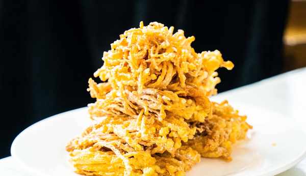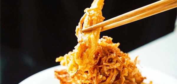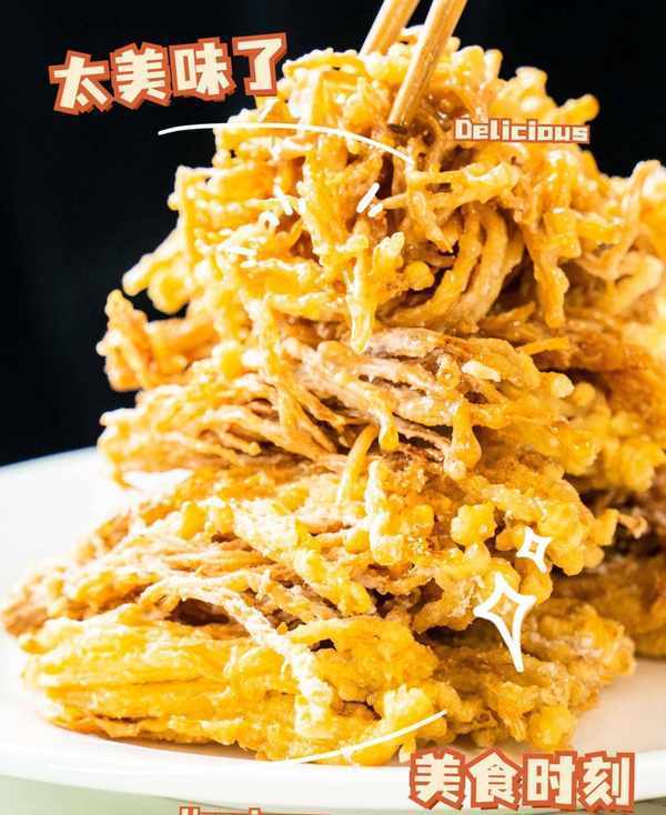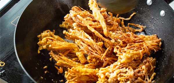 既然害怕炒爛金針菇,今天就教給大傢金針菇的另一種做法那便是油炸。為瞭防止炸糊我們先要在金針菇上裹好雞蛋液,然後用熱油炸上2次。