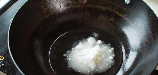 要調配酸甜味的醬汁也很簡單,開火燒熱炒鍋。在鍋裡倒入50克白醋和50克白糖,這樣吃起來就有酸甜味道瞭。把火調成中火,在鍋裡加入鹽2克攪拌熬煮使白糖融化。最好加入少量的明油這樣熬煮出來的醬汁更鮮艷透亮。