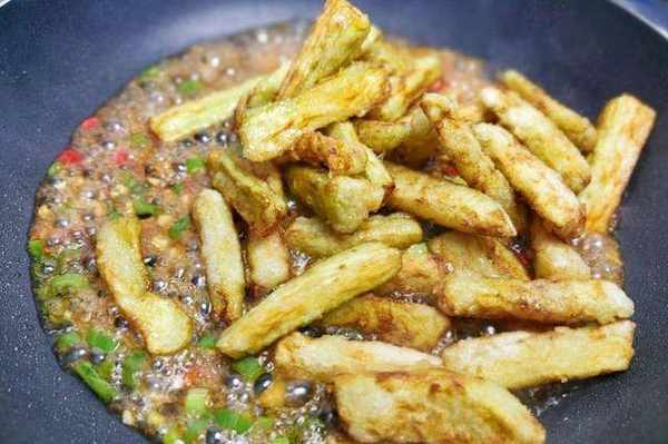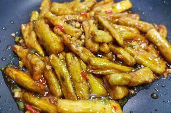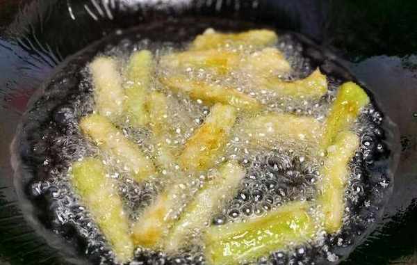 2、油炸茄條時要註意火候,要等到稍微冒煙後再下鍋,油溫太低茄子不僅吸油,炸好後口感也不脆。