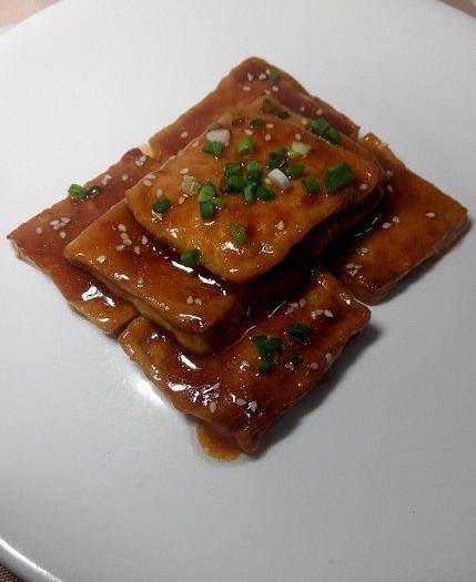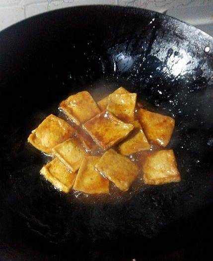 我這切薄瞭,切厚塊的話,因為煮制時間短,外皮還會是脆的,咬開裡面又是嫩嫩的;豆腐煎一煎,能充分吸收醬汁,味道濃鬱,還不錯吃。也省得去外面買,自己做幹凈衛生花錢少...喜歡的親,試試唄~