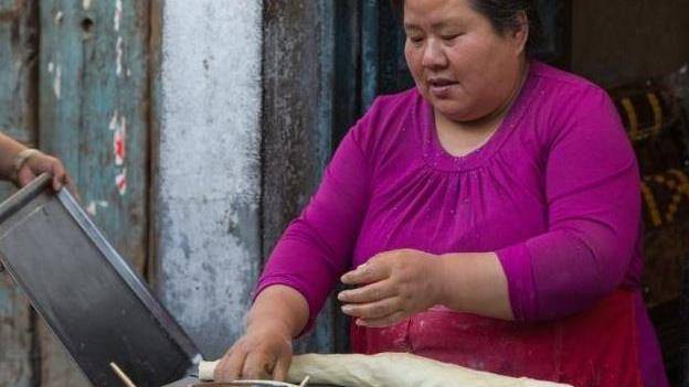 他傢賣的是傳統的小吃炸糖糕,地址就位於陜西西安秦鎮老街的一個百年老屋裡面。他傢賣糖糕已經賣瞭40多年瞭,而且他傢炸糖糕的方式一直是最簡單的最原始的方式,每個過來買蛋糕的顧客都親切的稱老板娘為”胖大姐“,估計是因為她的身材比一般人要胖一些吧。