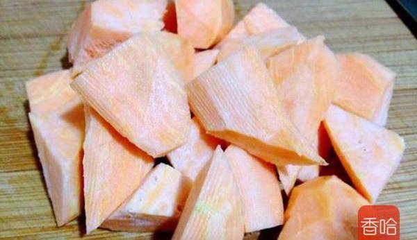 2.紅薯去皮洗凈切成滾刀塊兒