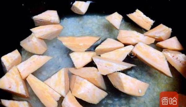 3.鍋中放入適量水,放入紅薯塊兒