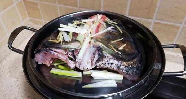 買回來的鯉魚清洗幹凈將頭切下來,用刀將魚頭對半切開,註意:魚嘴位置不要切開。將大蔥切成絲,生薑切一部分薑片,再切一部分薑絲,大蒜剁成碎末備用。再將魚頭上的黑膜清除幹凈,然後用水沖洗兩遍,洗去血水。然後在整個魚頭上,先塗抹適量的料酒去腥味,再塗抹適量的鹽,適量的胡椒粉,醃制20分鐘,讓魚頭更加的入味。