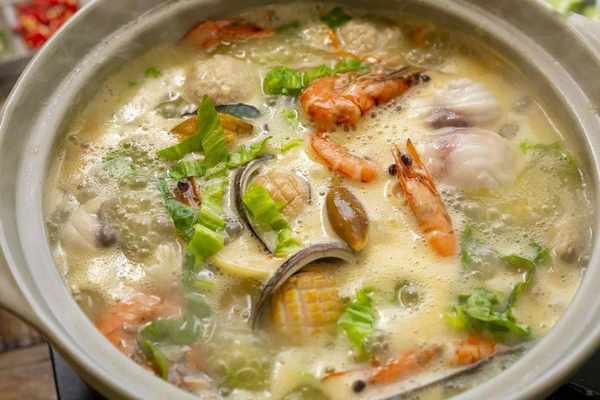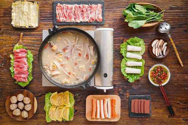 港式火鍋也被稱為"打邊爐",湯底加入蝦米、干貝等海鮮還有白蘿蔔等的高湯。涮品也以海鮮類食品為主,比如蝦滑、墨魚丸、鮮魚片等,營養豐富,可以提供人體所需的蛋白質。