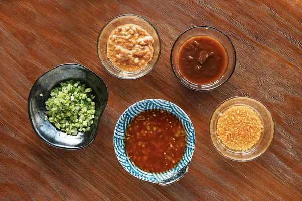 6、麻醬料:芝麻醬(或花生醬)+糖+鹽+生抽王+胡椒粉+味精+葱+香菜+麻油。適合:配蛤蜊、魚片、腰片和各種河鮮。
