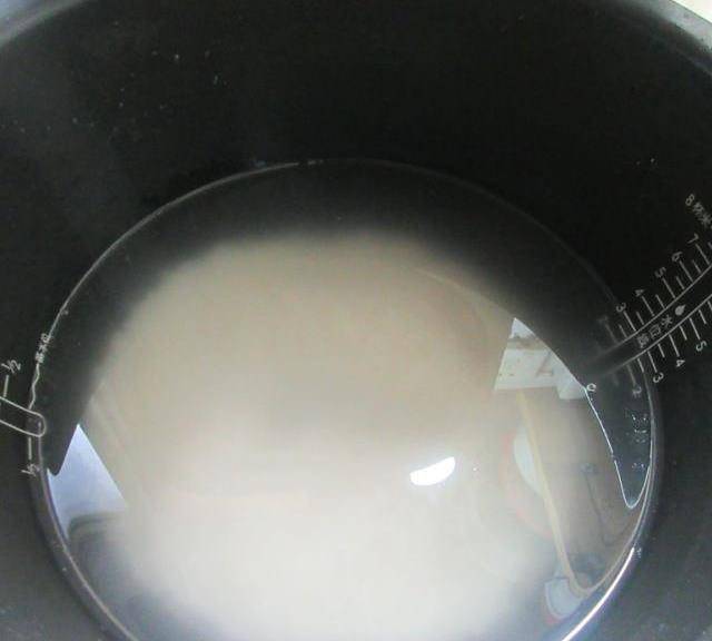 第4步、隨後,將大米倒入電飯煲內膽中淘洗淘洗,加入清水和平時煮飯差不多的水量。
