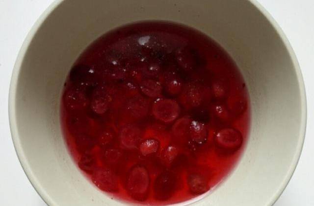 1.蔓越莓幹洗凈,用開水泡一下,水量剛剛沒過蔓越莓幹即可,晾涼放冰箱冷藏備用