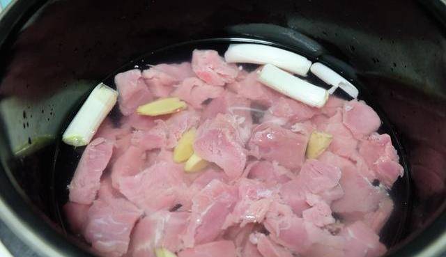 4、高壓鍋燉12-15分鐘。如果不用高壓鍋,可以用湯鍋,但要煮的時間久一點,最好要一個小時左右;高壓鍋煮好的肉塊可以在高壓鍋裡燜15-30分鐘,然後再取出來,肉很爛的;用溫水洗凈,挑去蔥薑,瀝水後放進保鮮袋裡;