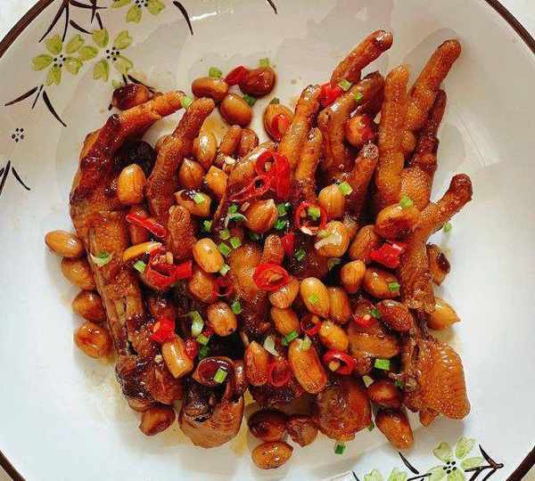 原料:雞爪、花生米、朝天椒、生薑、大蒜、食鹽、冰糖、胡椒粉、生抽、老抽、蠔油、桂皮、花椒、香葉、枸杞、黨參、啤酒。