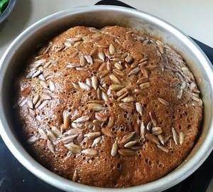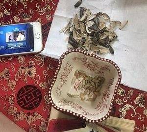 扒點瓜子仁、撒在發酵好的紅糖糕上