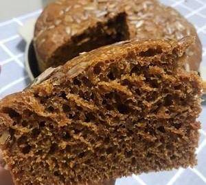 紅糖;用200克熱水化開(放涼備用)。酵母;用35度40克水泡開(備用)。溫紅糖水酵母雞蛋面粉放在一起用打蛋器打開,沒有時間限制、隻要沒有疙瘩就行。打好後倒入模具,發酵至兩倍