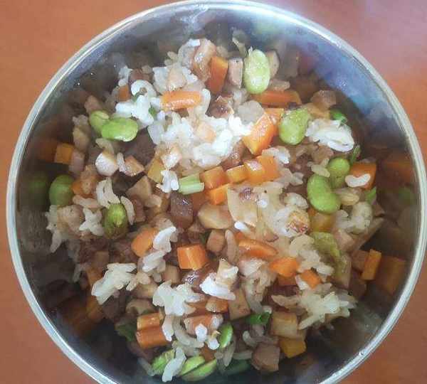 經常吃米飯加炒菜,實在不曉得今天炒什麼菜。正好冰箱有臘肉,換個吃法。小時候最喜歡吃燜飯,四季豆燜飯、南瓜燜飯等。