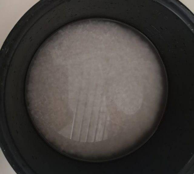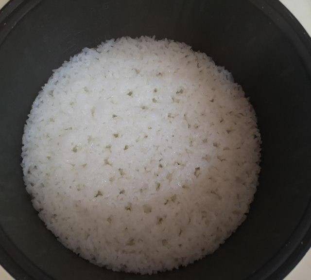 第8步、加入炒好的臘肉香菇丁等,用筷子攪勻,繼續燜煮。