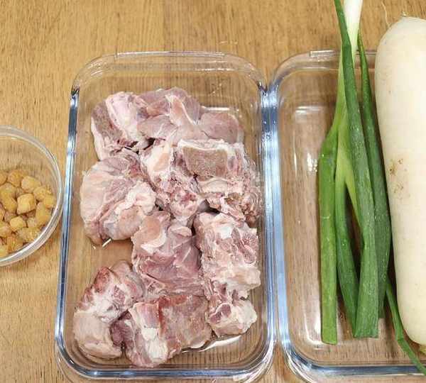 原料:豬腔骨、白蘿卜、幹貝、小蔥、鹽。