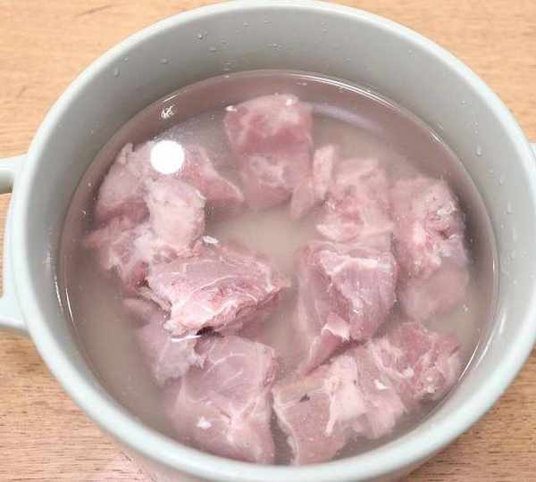 第2步、將腔骨放湯鍋中,放足夠量的涼水。