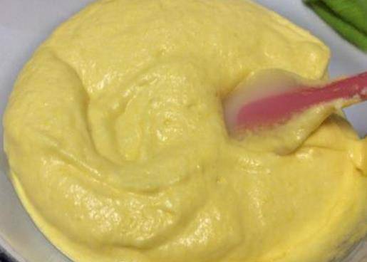 然後我們在模具當中刷上一層油加調好的面糊,倒進模具當中用手顛一下,將裡邊的氣泡顛出。然後我們再放在溫暖的地方進行發酵。