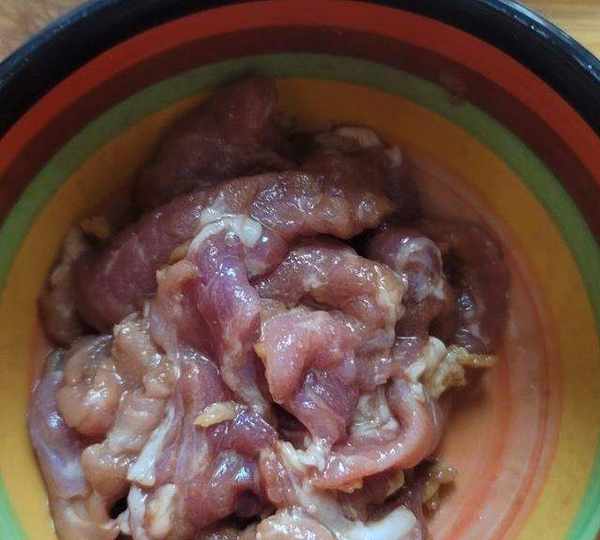 第2步、瘦肉切片放醃料抓勻醃制10分鐘。