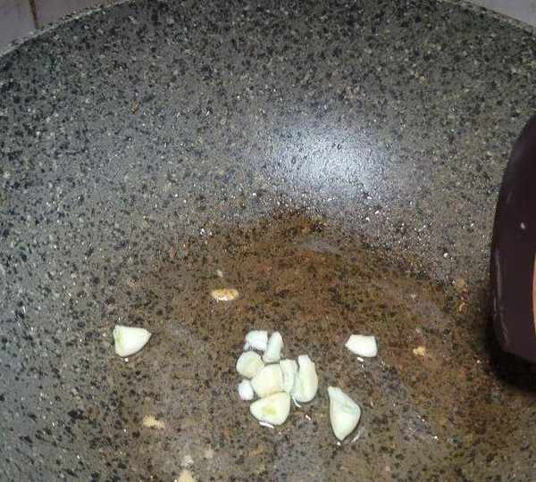 第6步、鍋裡酉放點油,下蒜末炒香。