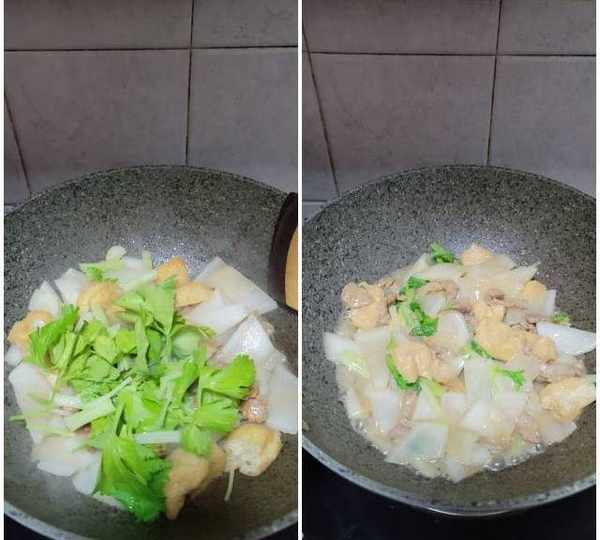 第11步、最後放入芹菜段炒一下下就可以啦。