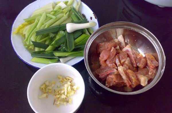材料:肉排香芹大蒜葉薑蒜頭花生油