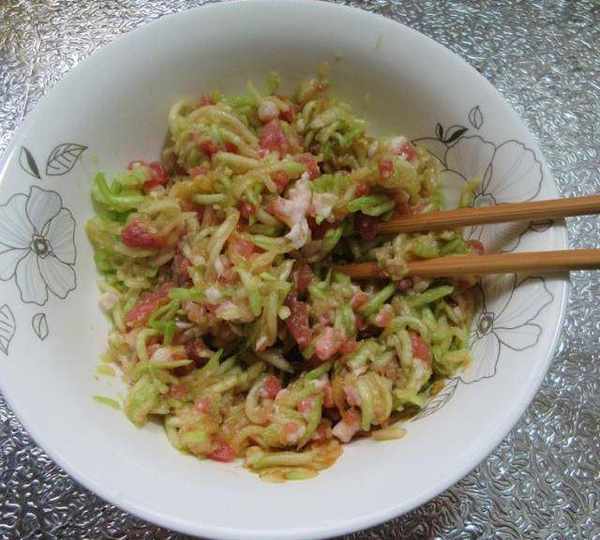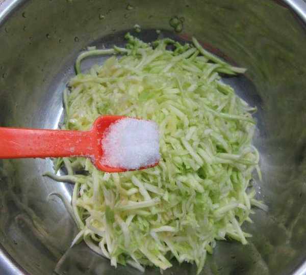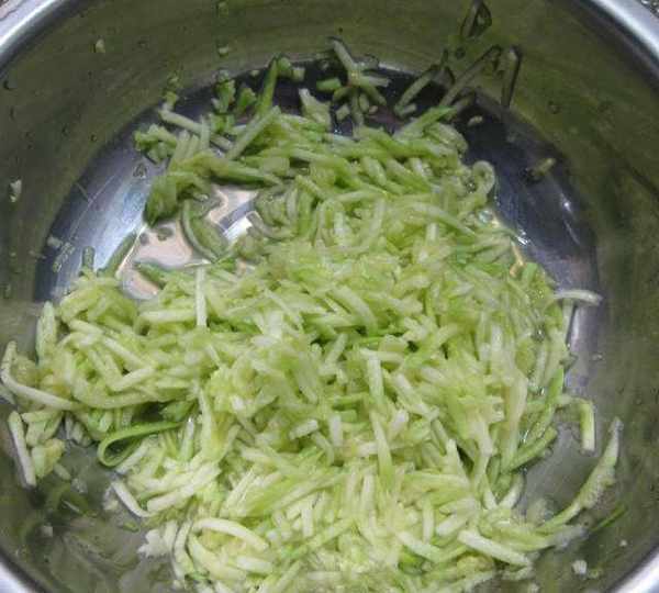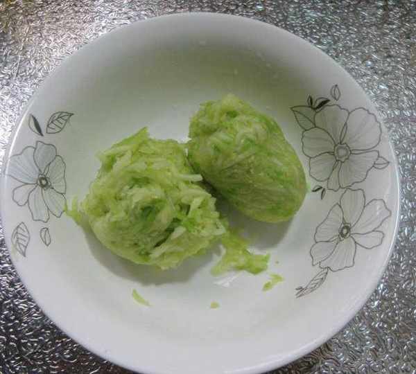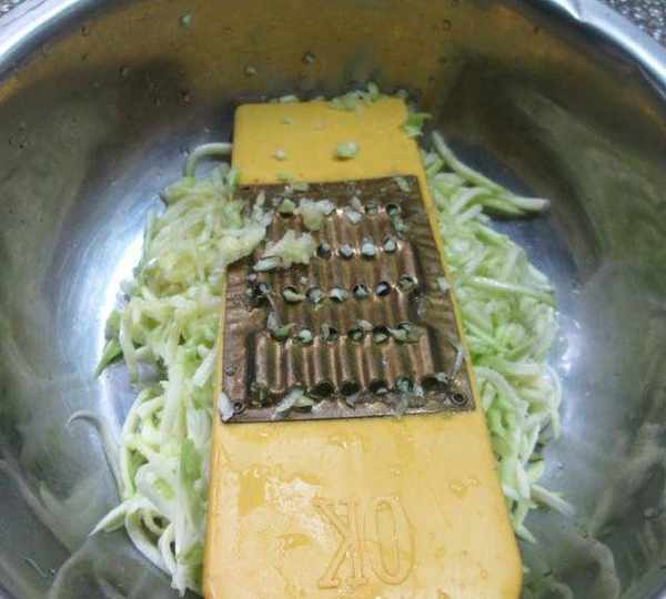 第6步、隨後,將西葫蘆擠幹水分放入大碗中。