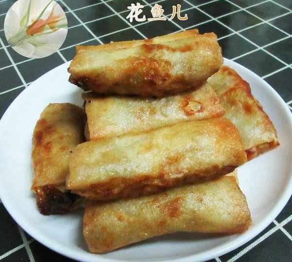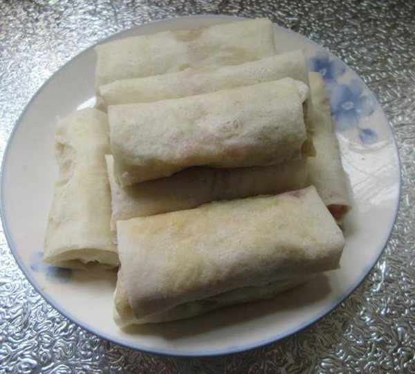 原料:春卷皮、肉末、西葫蘆、面糊、鹽、料酒、醬油、味精。