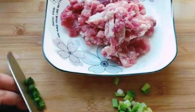 涼水放入蒸鍋,然後在單頁上蓋上一個盤子,防止蒸出氣孔和水蒸氣的滴落。蓋上蓋子,大火燒開,轉中火蒸15~20分鐘。在蒸的過程中,我們準備一些肉餡再把蔥薑切末備用。我們在蒸蛋糕的時候扣上一個盤子,即使蒸的時間過長,它也不會出現蜂窩狀,大傢可以看到特別的q彈。