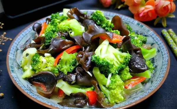 西蘭花,木耳,食用鹽,生薑,洋蔥,味精,醬油