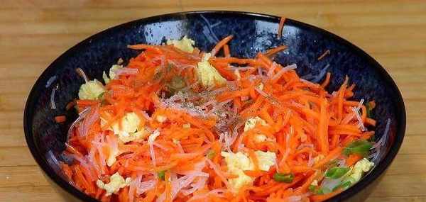 【制作食材】胡蘿卜,食用鹽,粉絲,雞蛋,食用油,面粉,小蔥,花椒粉