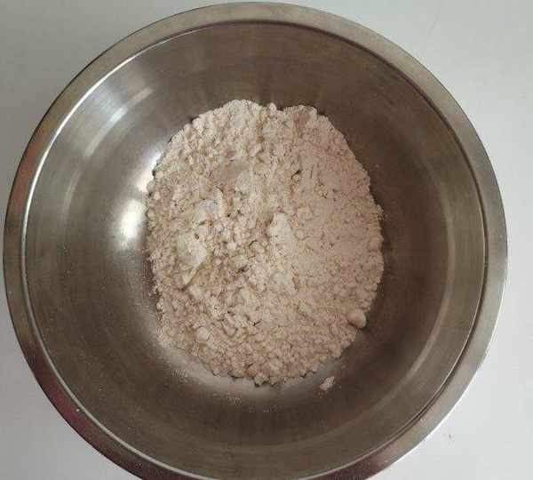 第3步、青稞苦蕎小麥粉倒入小盆中。