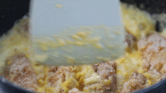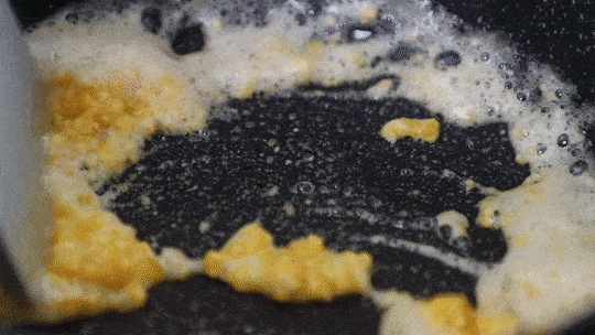 鍋中倒少許油,放入碾碎的蛋黃翻炒。