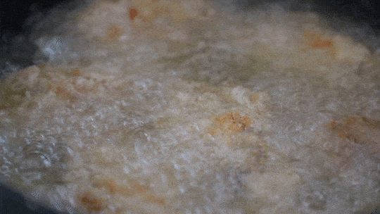 雞翅重新下鍋,復炸第二遍,外表可以更脆。