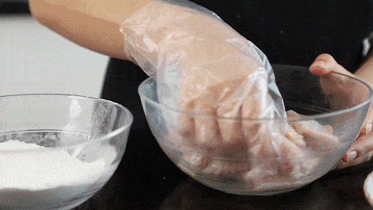 醃好的雞翅均勻裹上淀粉備用。