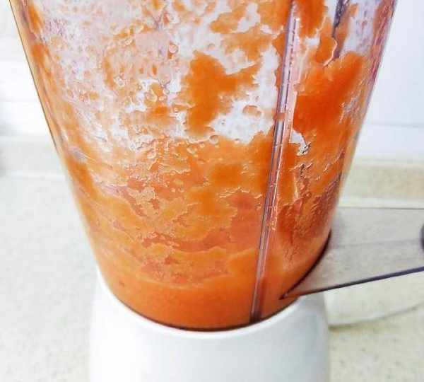 第1步、胡蘿卜洗凈去擦成絲放入料理機中攪打成漿。