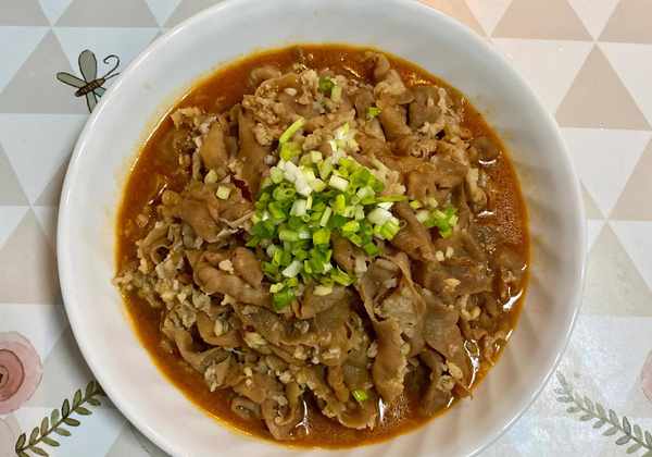 鍋裡燒開水,水開後把肥牛卷一片一片放到鍋裡,等肉色變白後,立刻撈出。