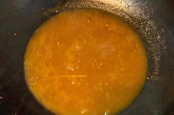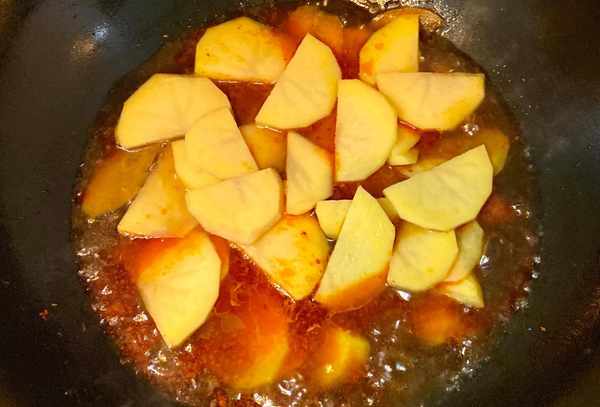 鍋裡隻剩下湯汁,你會發現燒開以後,湯汁濃稠,突突的冒著小泡泡。那是因為土豆淀粉的作用,湯汁就像被勾芡過一樣。