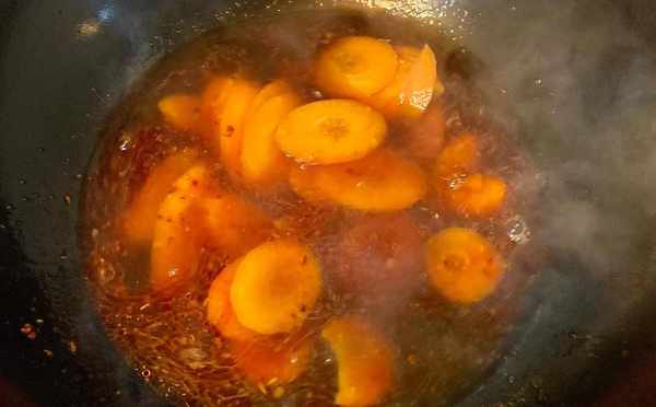 把胡蘿卜,土豆洗幹凈,去皮切成薄片備用。