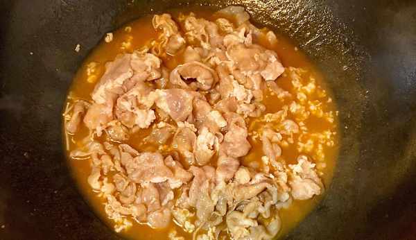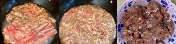 這一步不能久煮,防止肉片煮散,這樣做是為瞭去除血水,使湯汁清潔,也為瞭後面縮短肥牛下鍋的時間。
