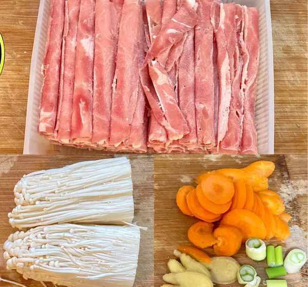 【材料】肥牛卷,金針菇,胡蘿卜,土豆