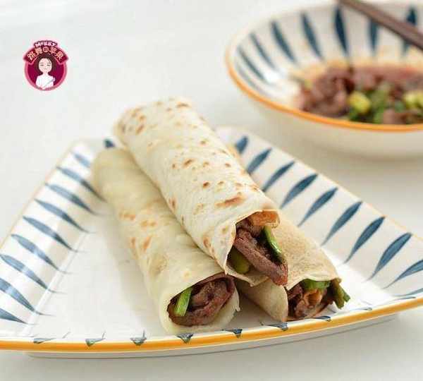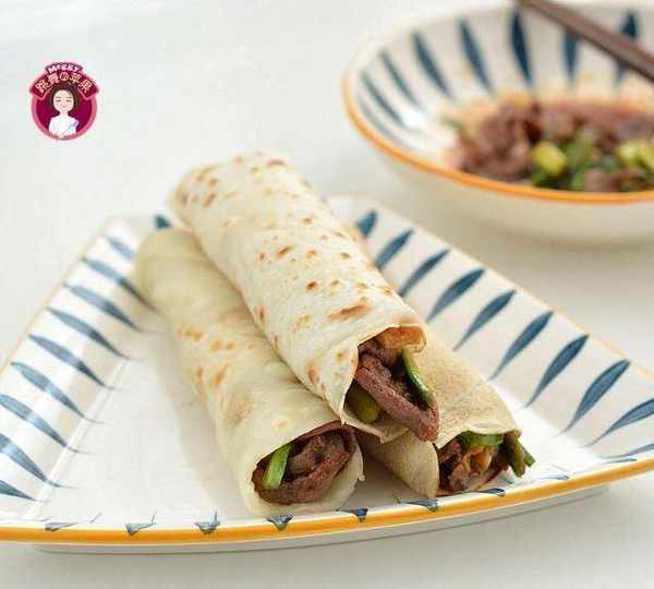 3分鐘烙出一張軟餅,卷上青蒜肥牛片,有滋有味、營養豐富的早餐餅就做好瞭。前後用不瞭20分鐘,如果不用刻意拍照曬圈,邊做邊吃,早餐做完,也吃得差不多瞭,精神抖擻地上班、上學去吧!青蒜肥牛可以換成自己喜歡的快手小炒,比如肉絲炒辣椒,雞蛋炒大蔥,或者直接炒雞蛋也很OK。