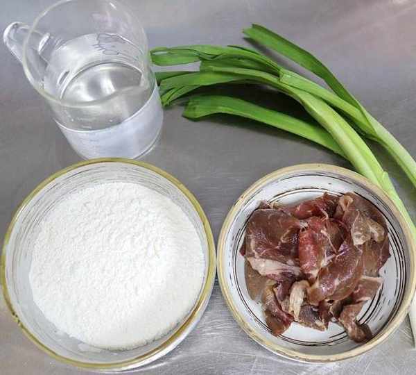 第1步、面粉、涼水、肥牛片、青蒜準備好。