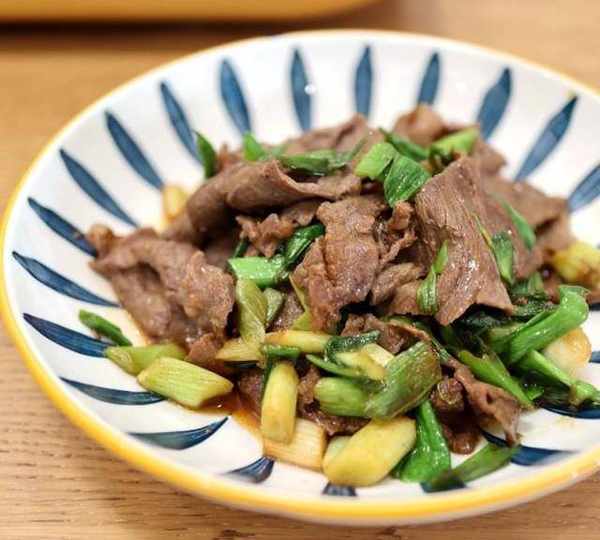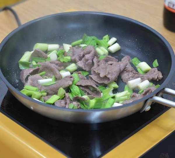 第7步、青蒜炒肥牛,3分鐘搞定,倍兒香。