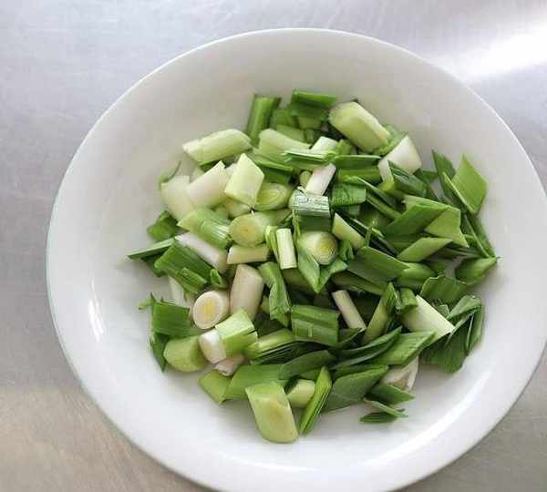 第3步、青蒜切小段;上述前3步可以提前在頭天晚上處理好。