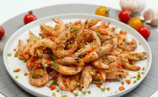蝦400克、青椒半個、紅椒半個、大蒜半頭、椒鹽5克、料酒15克、淀粉適量。