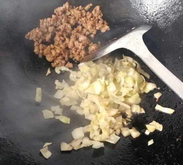 第3步、取適量肉末加料酒、少許生抽,炒熟。