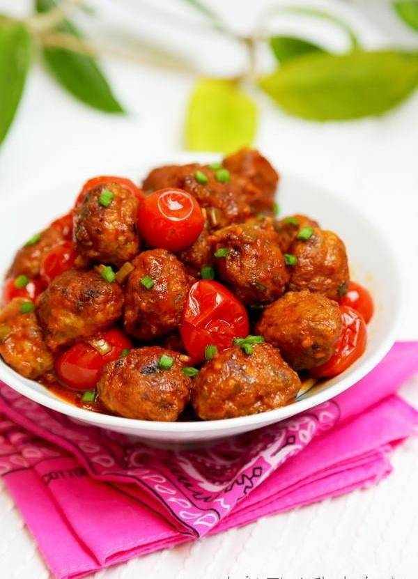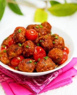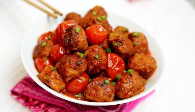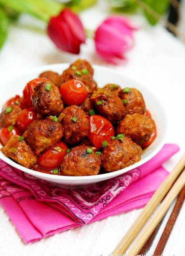 10.然後後將煎好的丸子下鍋燜煮。煮到略有汁水,且湯汁粘稠時,丸子就燒好瞭。