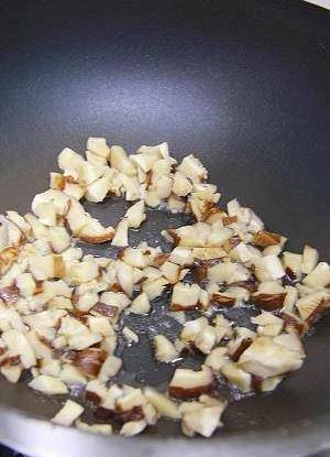 在煮飯的時候,我們將鍋中加入油,爆炒泡發後的香菇丁