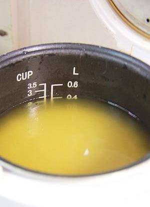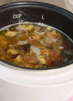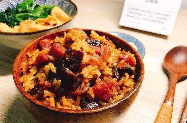 將香米洗凈,用泡發香菇的水加入電飯鍋內,用香菇水來煮飯,飯會更香卟