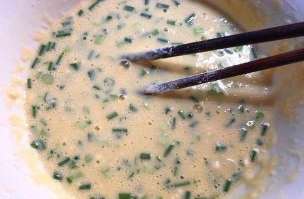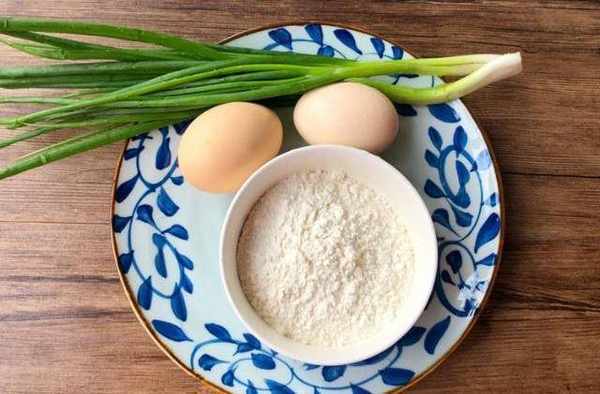食材:雞蛋2個,面粉80克,蔥30克,鹽適量,水100毫升